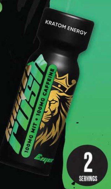 Purified Water, Mitragynine Extract (100mg MIT), Caffeine (100mg), Citric Acid, Natural & Artificial Flavors, Potassium Sorbate (preservative), Sodium Benzoate (preservative), Sucralose (sweetener), FD&C color (varies by flavor).